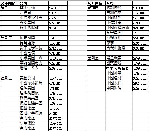 本星期為公司公布業績高峰期